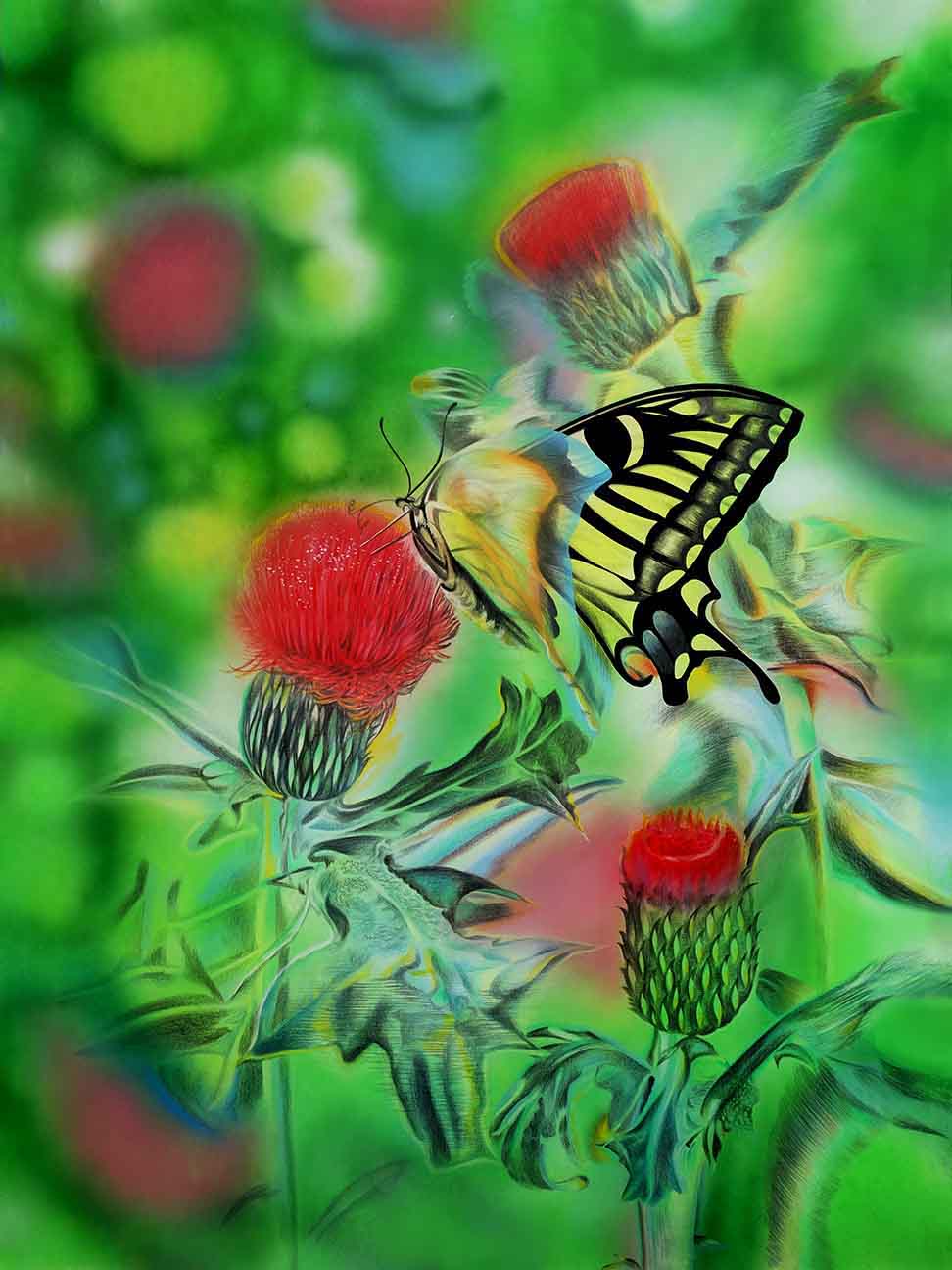 鳳凰成就了自己特别的生命,已化作一團火焰,經歷劫難,燃燒成灰燼,散落在另一個遙遠的地方,尋找自由與生命重新的契機。